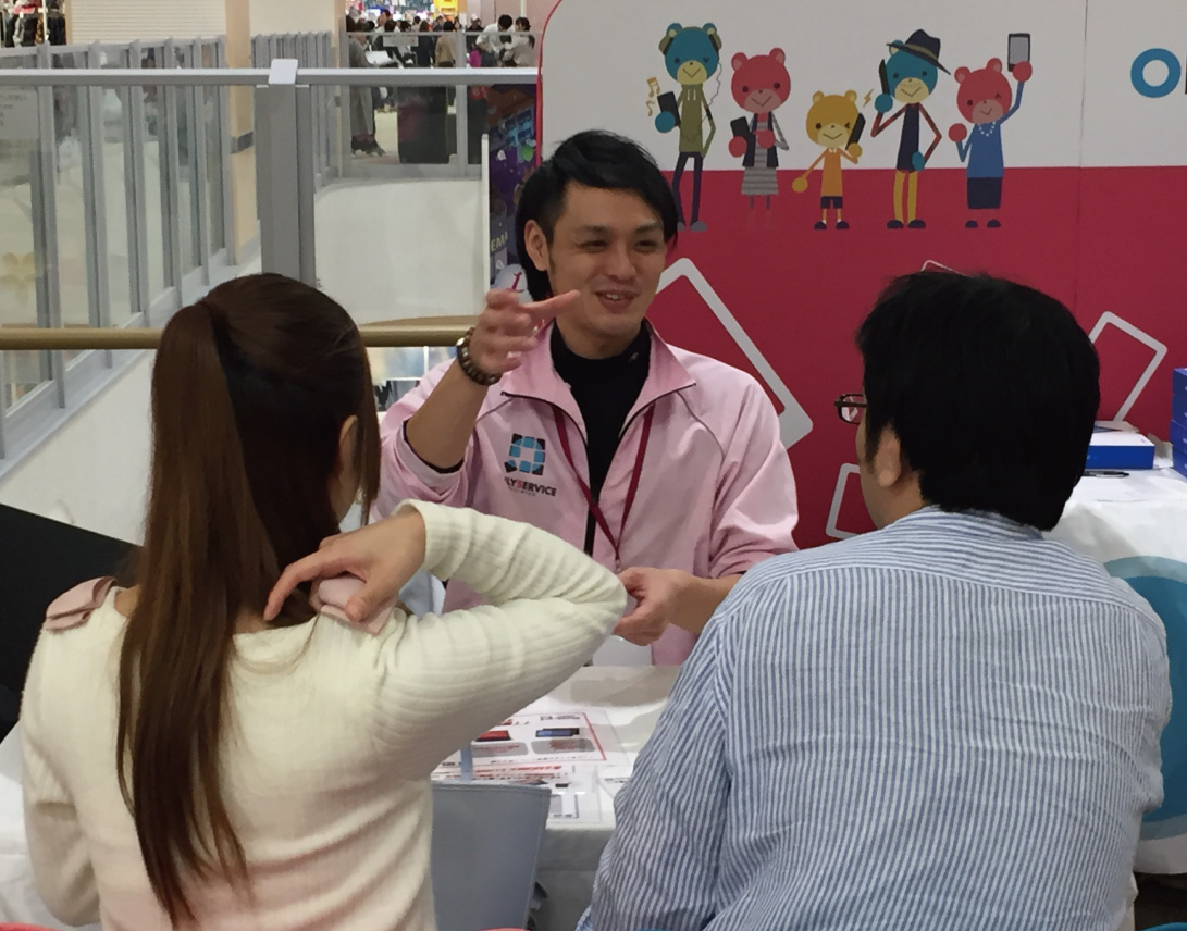 私たちは、インターネットやスマートフォンといった製品を、これまで前向きに検討する機会のなかったお客さまにも使っていただきたいと考えています。そこで、店舗を構えてお客さまをお待ちするのではなく、ショッピングセンターなどの商業施設に赴き、こちらから積極的にお声がけをするブース販売を展開。全国1万箇所以上のブースにて、商品・サービスに触れていただけるイベントを開催し、お客さまにその便利さや楽しさを知ってもらえるよう、日々努めています。