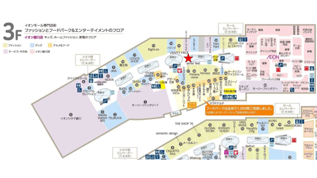 | フロアマップ | content/images/service/robo/FloorMap/aeonmallAYAGAWA_3F.jpg |