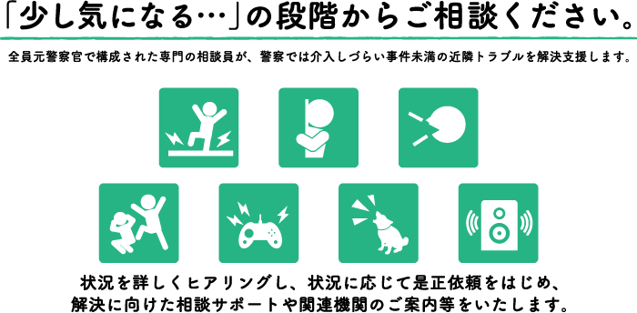 元警察官による近隣トラブル解決支援サービス 近隣トラブル解決支援 mamorocca 全員が元警察官で構成された専門の相談員が 警察では介入しづらい事件未満の近隣トラブルを解決支援します。 月額550円