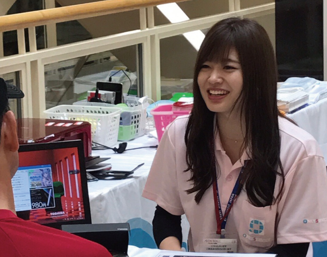 私たちは、インターネットやスマートフォンといった製品を、これまで前向きに検討する機会のなかったお客さまにも使っていただきたいと考えています。そこで、店舗を構えてお客さまをお待ちするのではなく、ショッピングセンターなどの商業施設に赴き、こちらから積極的にお声がけをするブース販売を展開。全国1万箇所以上のブースにて、商品・サービスに触れていただけるイベントを開催し、お客さまにその便利さや楽しさを知ってもらえるよう、日々努めています。