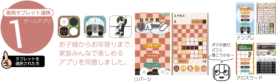 ※アプリは特定のタブレットでのみ動作可能です。また、ロボホンとリンクしていない状況では利用できません。