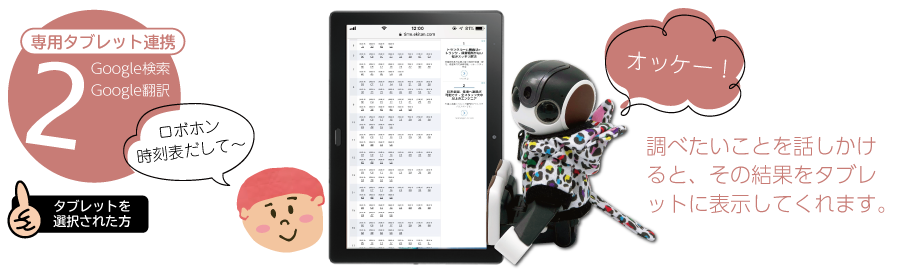 Google検索ではロボホンと対話した結果をロボホンリンクで接続されているタブレットへ送り、