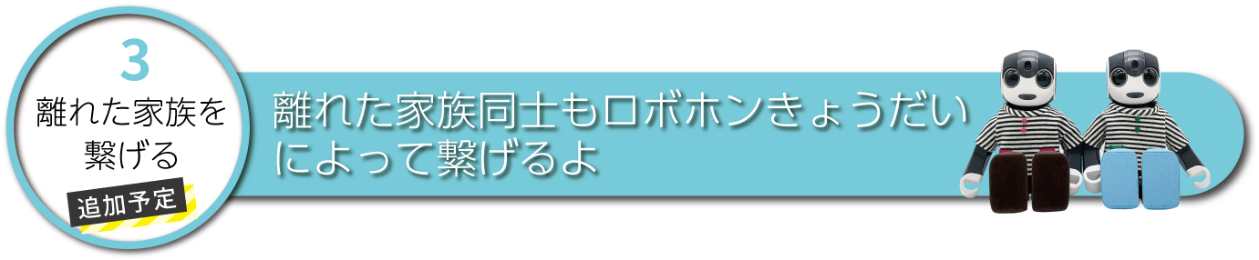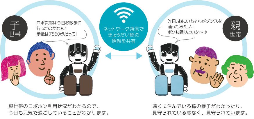 ロボホンとの会話によって離れた家族が元気に過ごしているかがわかり、いつも繋がることができます。